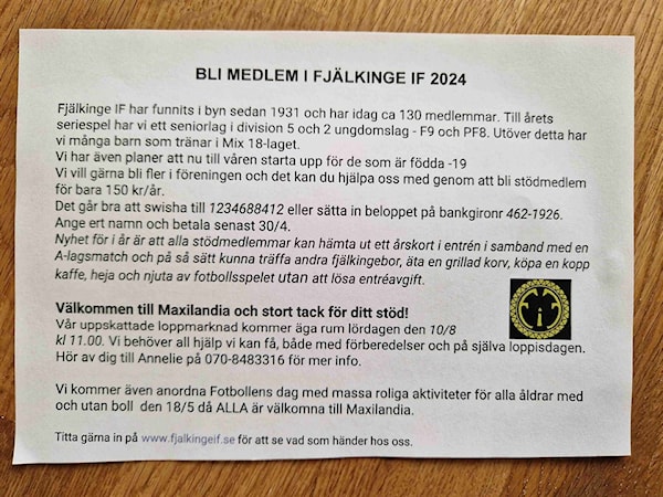 Bli stödmedlem i Fjälkinge if 2024 för bara 150 kr och gå fritt in på alla hemmamatcherna 💛💛